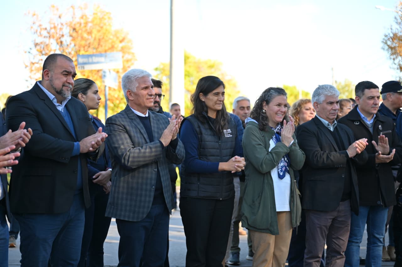 El acto tuvo lugar en la esquina de Capitán Bolzán y Héroes de Malvinas y fue encabezado por Poggi junto a la ministra de Seguridad, Nancy Sosa; también participaron el presidente de la Agencia Ciencia, Tecnología y Sociedad, Pablo Guerreiro; y la subdirectora de Alarma Ciudadana, Teresita Llanos.