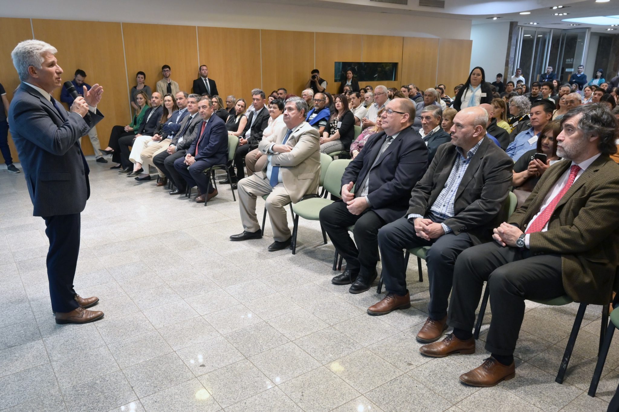 El Gobernador saludó afectuosamente a cada vecino que llenó los asientos dispuestos en el recinto, porque sabe que el camino que recorrieron hasta cruzar la meta no fue sencillo. “Nuestra tarea fue allanar el camino, eliminar trabas administrativas que parecían hechas para tenerlos de rehén y abaratar los costos elevadísimos que les impedían terminar el proceso”, recordó. Mediante la remoción de artículos antiguos y un convenio con el Colegio de Escribanos llegaron a un acuerdo para solucionar el precio para escriturar, mientras que la agilización de las etapas burocráticas es producto del arduo trabajo de la dirección de Vivienda y Regularización Dominial a cargo de Hugo Rossi.