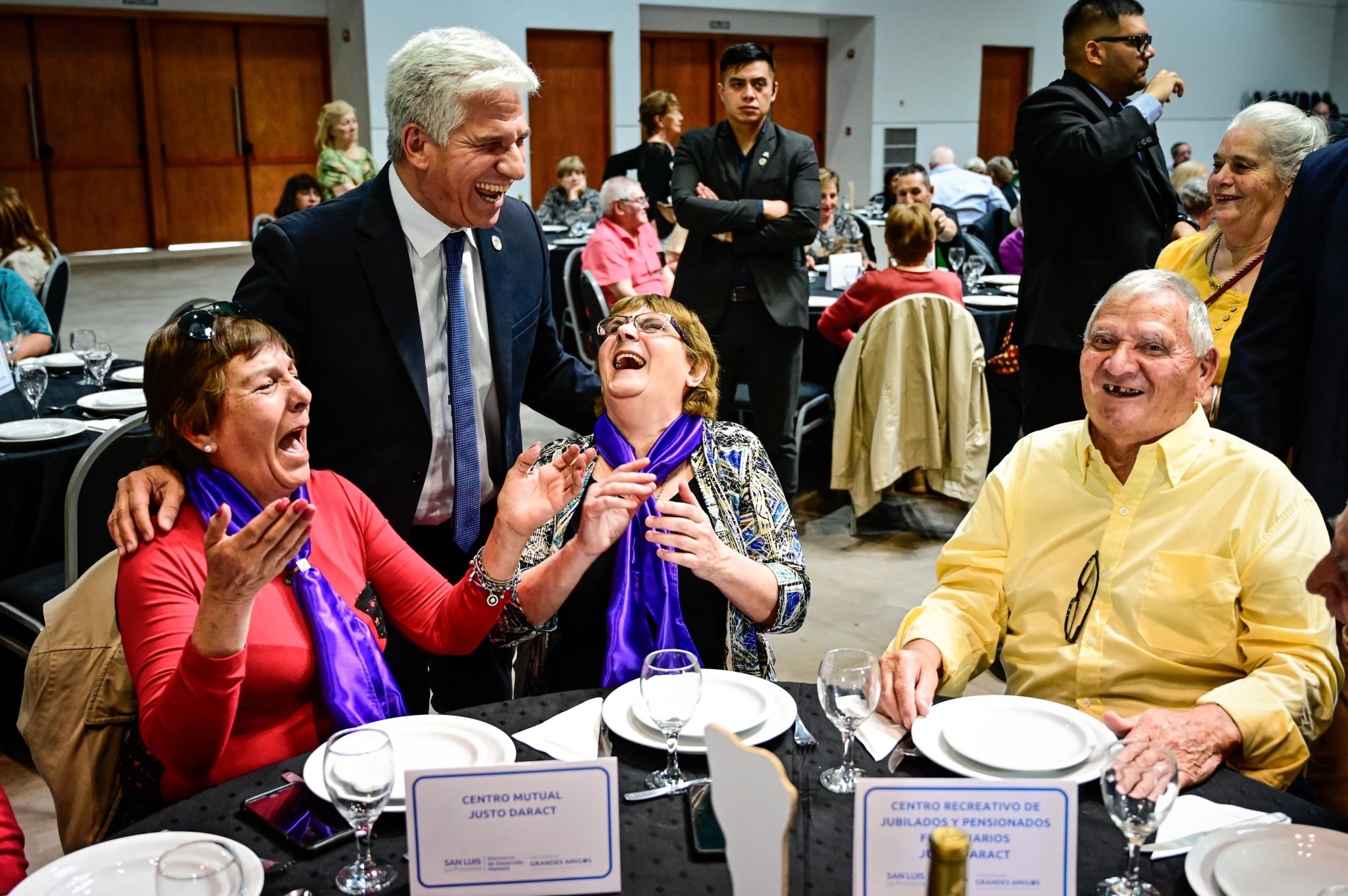 Con un almuerzo en el que no faltó la música y el baile, los sorteos y la torta, representantes de 58 centros de jubilados de toda la provincia celebraron este viernes el ‘Día del Jubilado’ junto al gobernador Claudio Poggi y su equipo, en el Centro de Convenciones de La Punta.