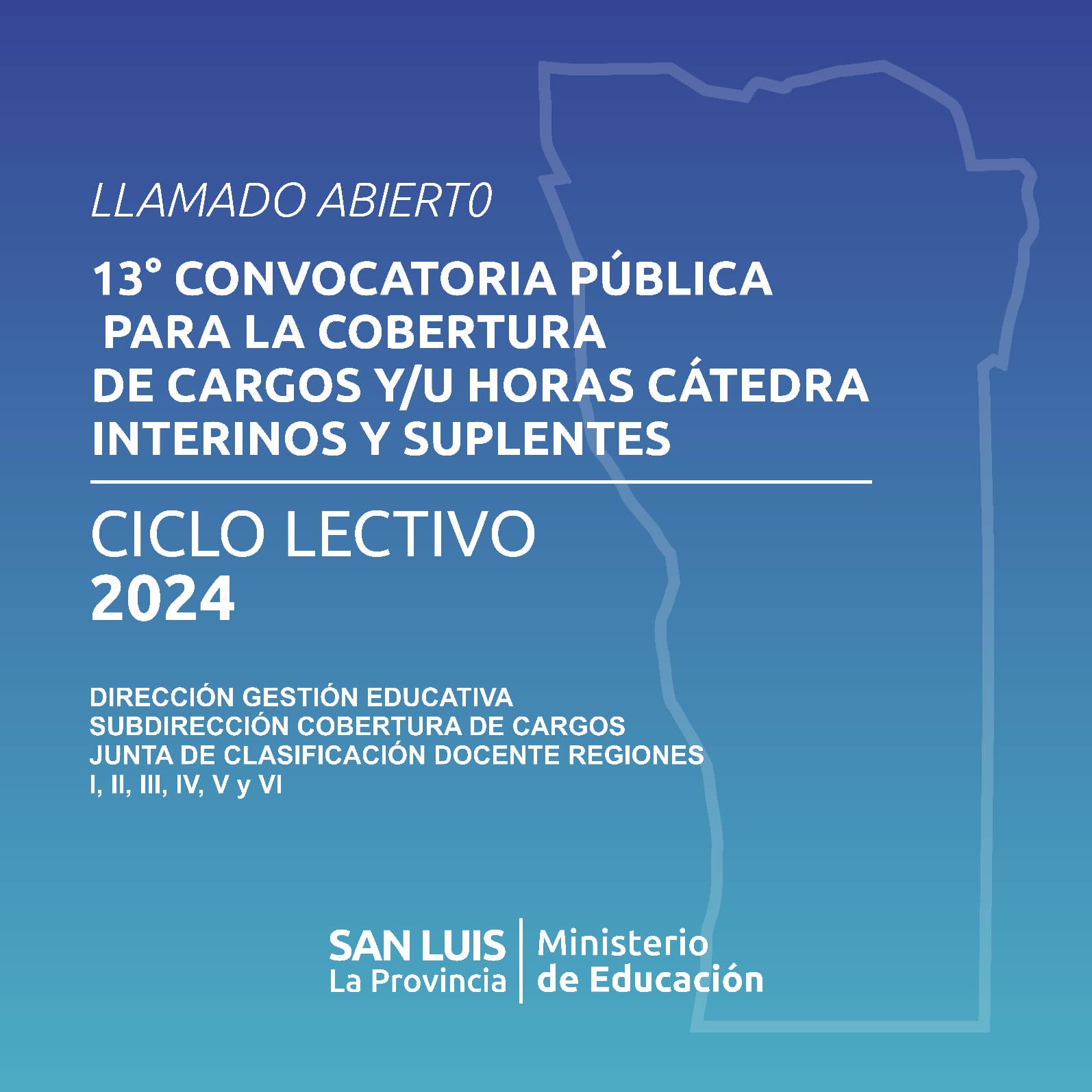 Fecha y hora límite: las manifestaciones de voluntad para la cobertura de cargos se recepcionarán a través del Sistema de Junta de Clasificación Docente de la provincia de San Luis: https://jcdocente.sanluis.edu.ar el jueves 26 de septiembre de 2024 en horario de 8:00 a 14:00.